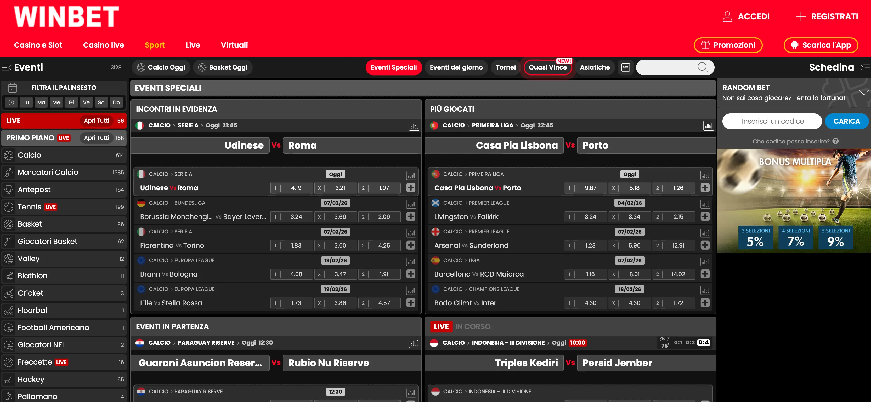 | Quote Maggiorate | Promozioni settimanali su eventi top |